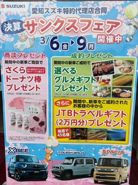 スズキにて3月6日(金)~3月9日(月)の3日間